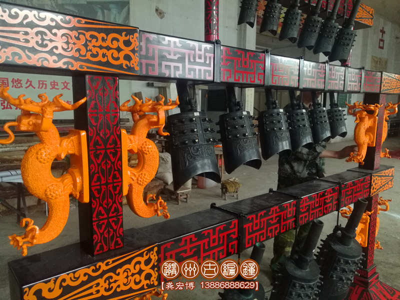 古編鐘公司特色定制編鐘系列,根據(jù)客戶要求制作的仿古演奏型編鐘,規(guī)格、紋飾、音階、顏色及造價(jià)可都按客戶指定要求進(jìn)行創(chuàng)作并加工制作,這套編鐘區(qū)別于一般曾侯乙編鐘,滿足了客戶的特殊要求。